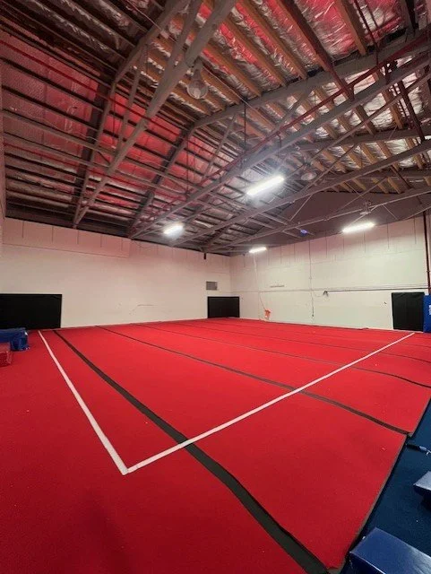 Our upstairs gym is approximately 821m², with sprung floor area (red floor)
